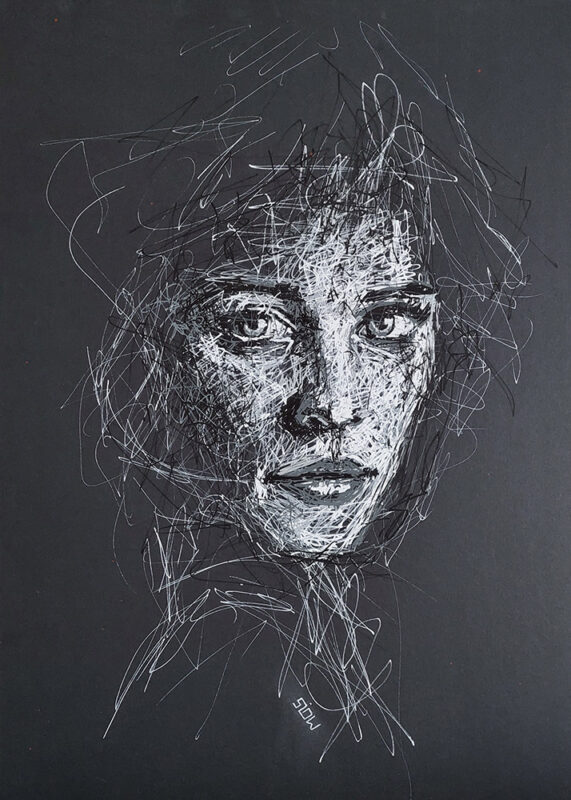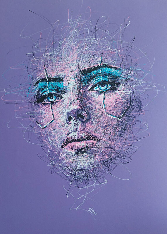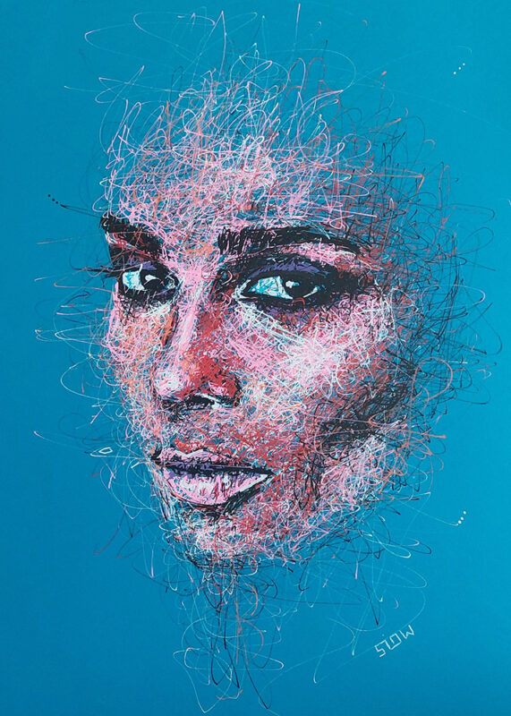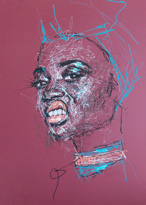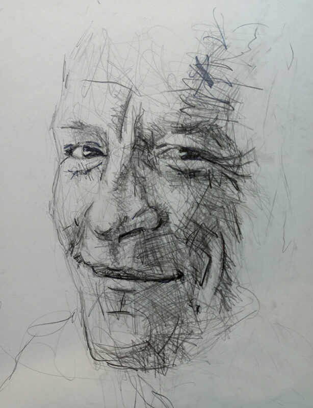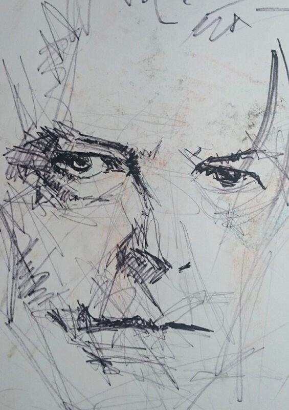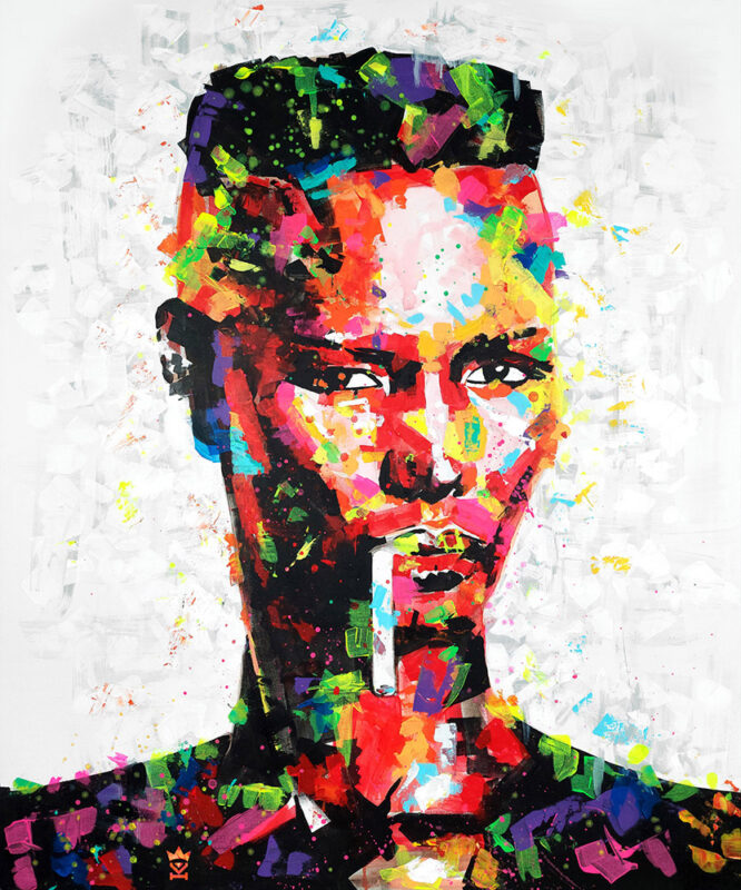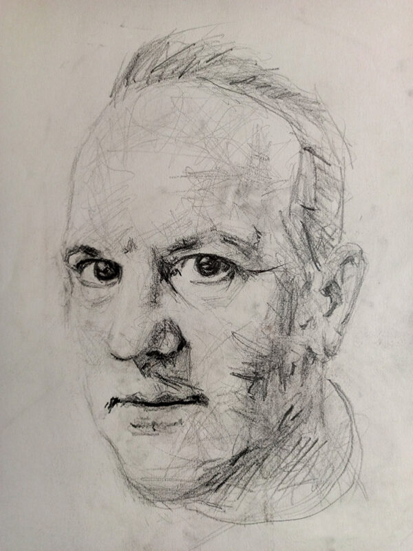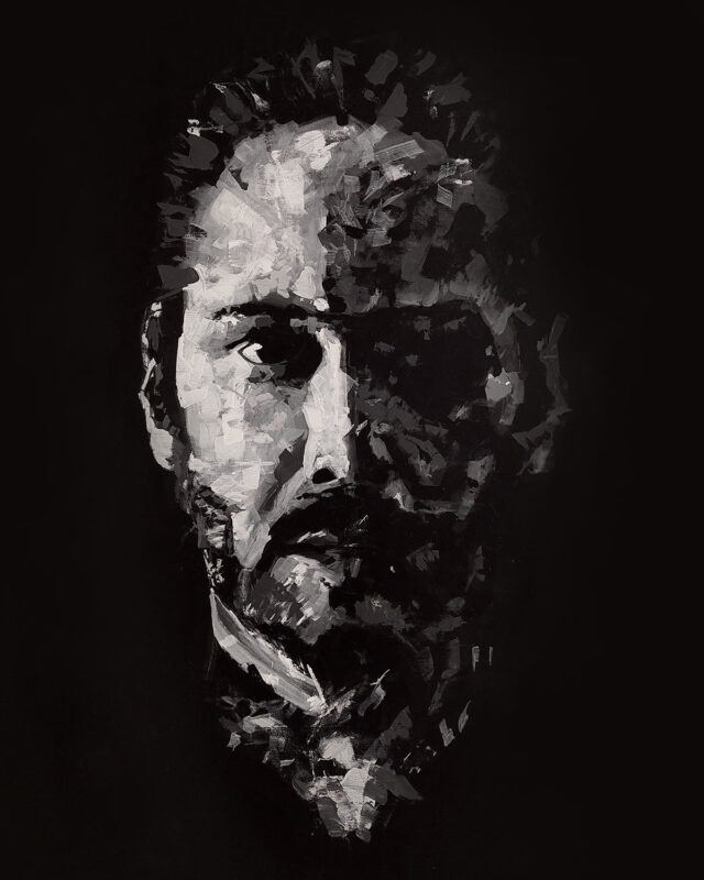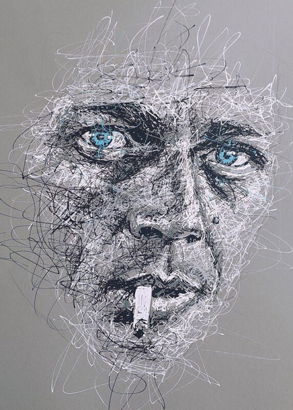Siow Portrait Mann mit Zahnstocher im Mund in schwarz-weiß Pastell