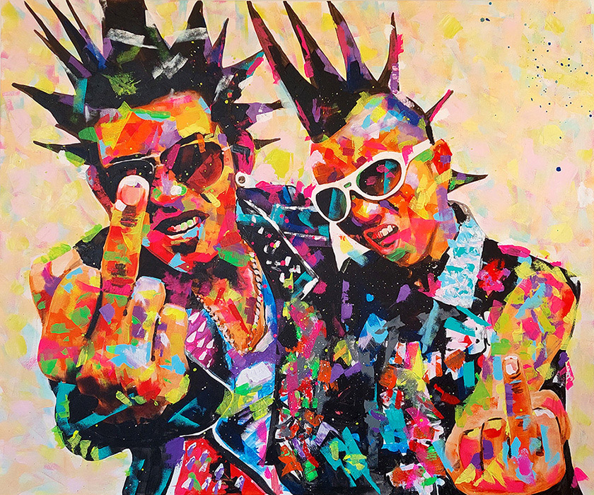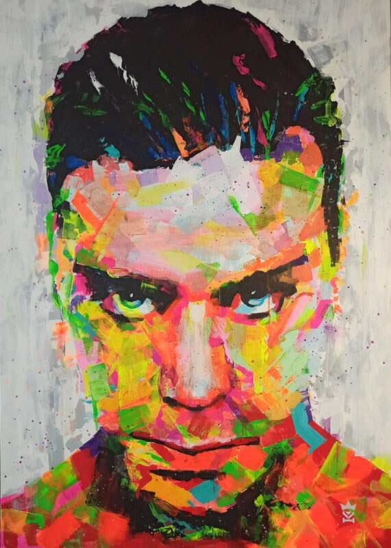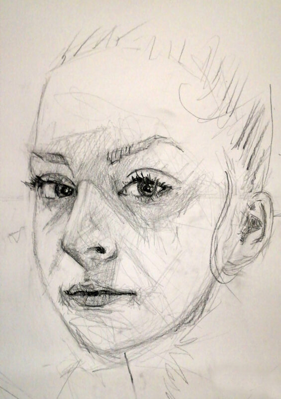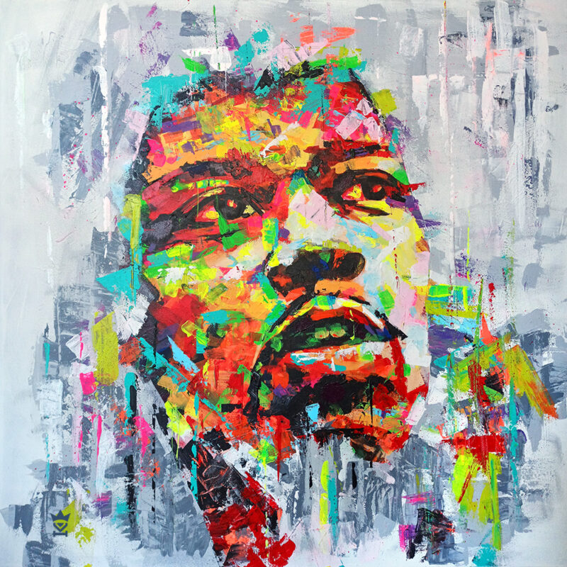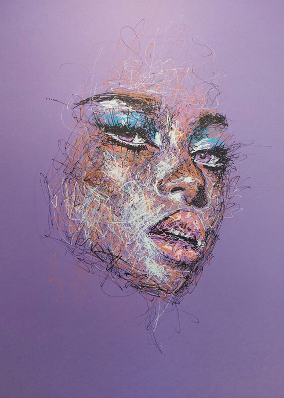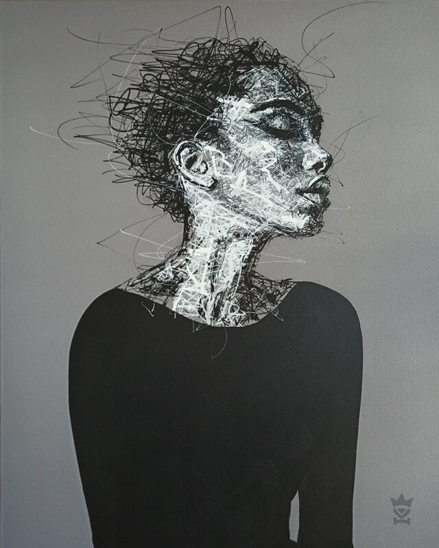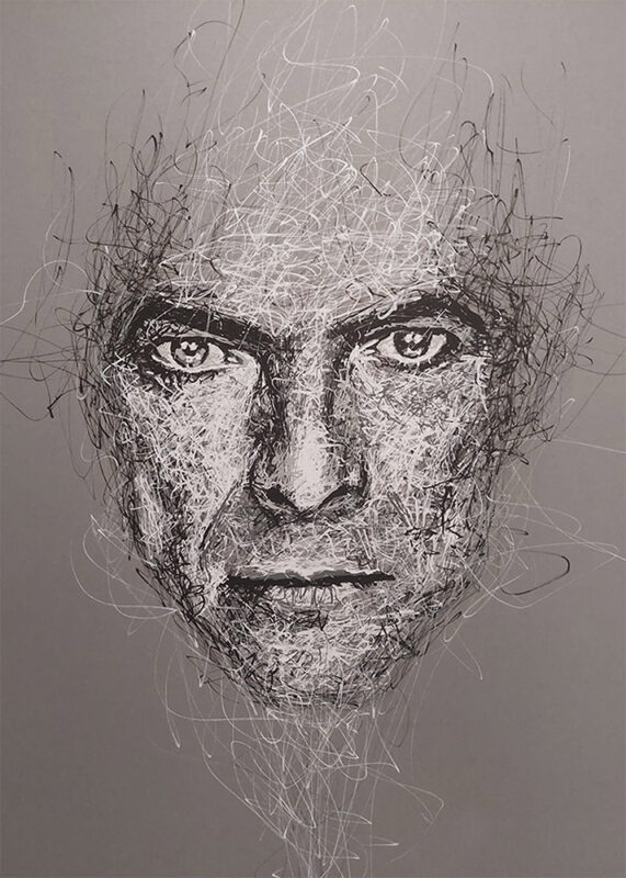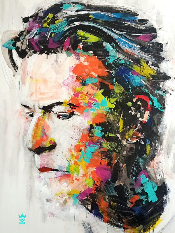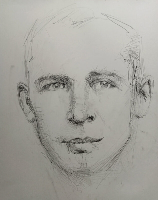 Siow Portrait Mann mit Zahnstocher im Mund in schwarz-weiß Pastell